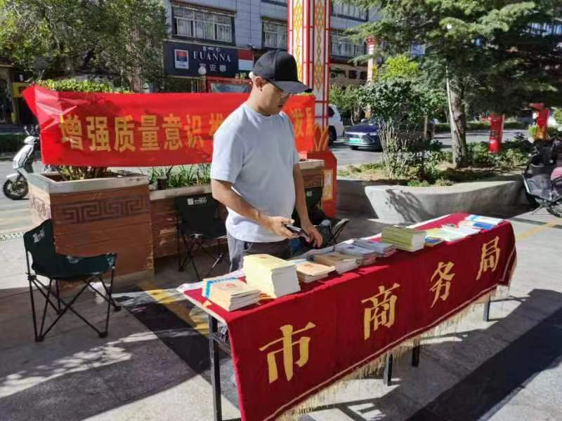 市商务局坚持把学习贯彻习近平新时代中国特色社会主义思想主题教育成果体现到高质量发展的成效上,在着力推动拉萨市经济高质量发展上当好排头兵。为进一步提高全民质量意识,建设质量强市,促进拉萨市经济绿色健康发展。9月25日,我局安排专人,在宇拓路步行街配合开展“质量月”宣传活动。